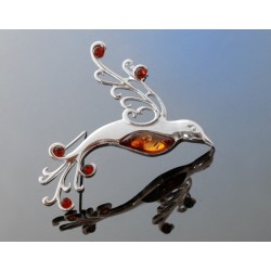 Starannie wykonana, piękna broszka ze srebra 925 i bursztynu.